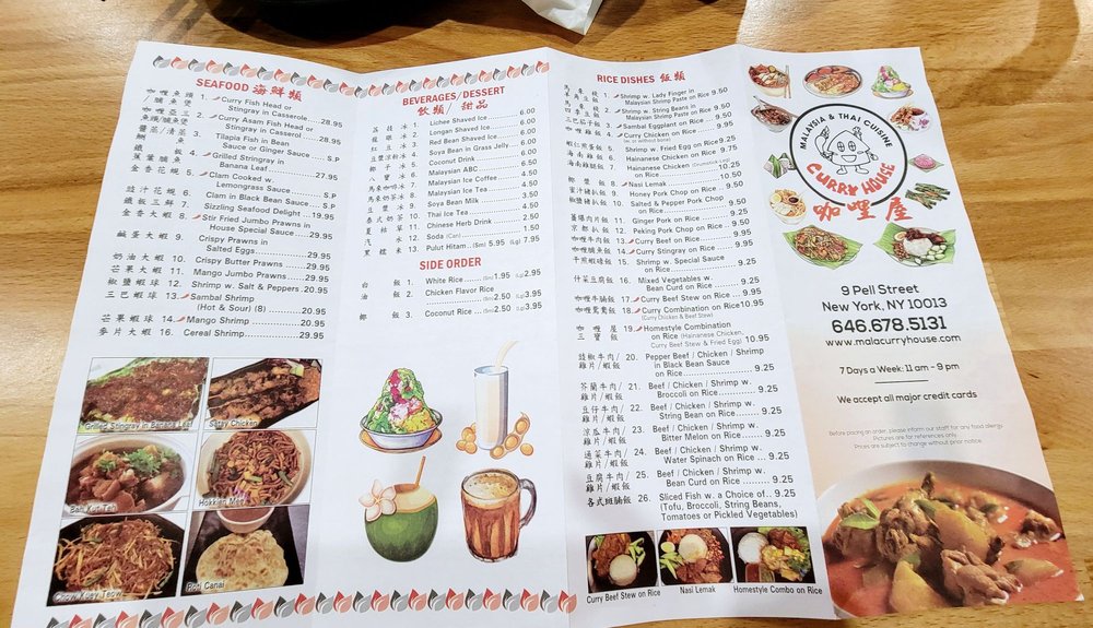 Curry House, a Thai restaurant located in New York, offers a variety of appetizers, soups, and pan-fried noodles. The menu includes dishes such as Achat Malaysian pickled vegetables, Baby Oyster Omelette, Seafood Tom Yum Soup, and Beef Chow Fun. The restaurant provides delivery and takeout options, making it convenient for customers to enjoy their delicious meals at home. The casual dining atmosphere and the reusable tableware add to the overall dining experience. The bold flavors and unique combinations of ingredients make Curry House a must-visit for those craving authentic Thai cuisine. With their impeccable service and delectable dishes, Curry House is sure to leave a lasting impression on diners.